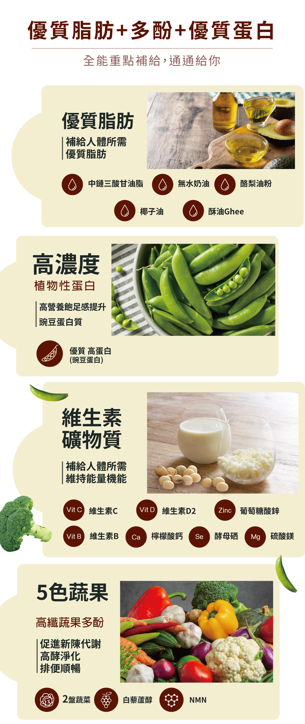 優質蛋白、益生菌、NMN、白藜蘆醇、多種礦物質及維生素一次滿足!!!