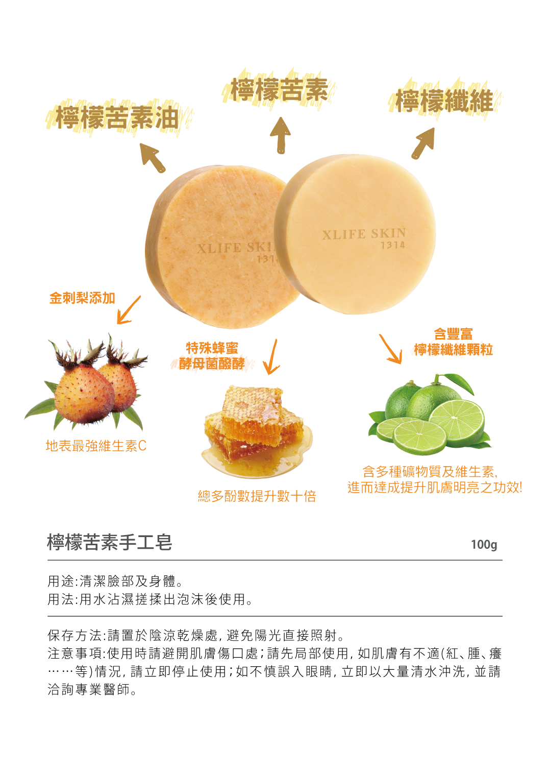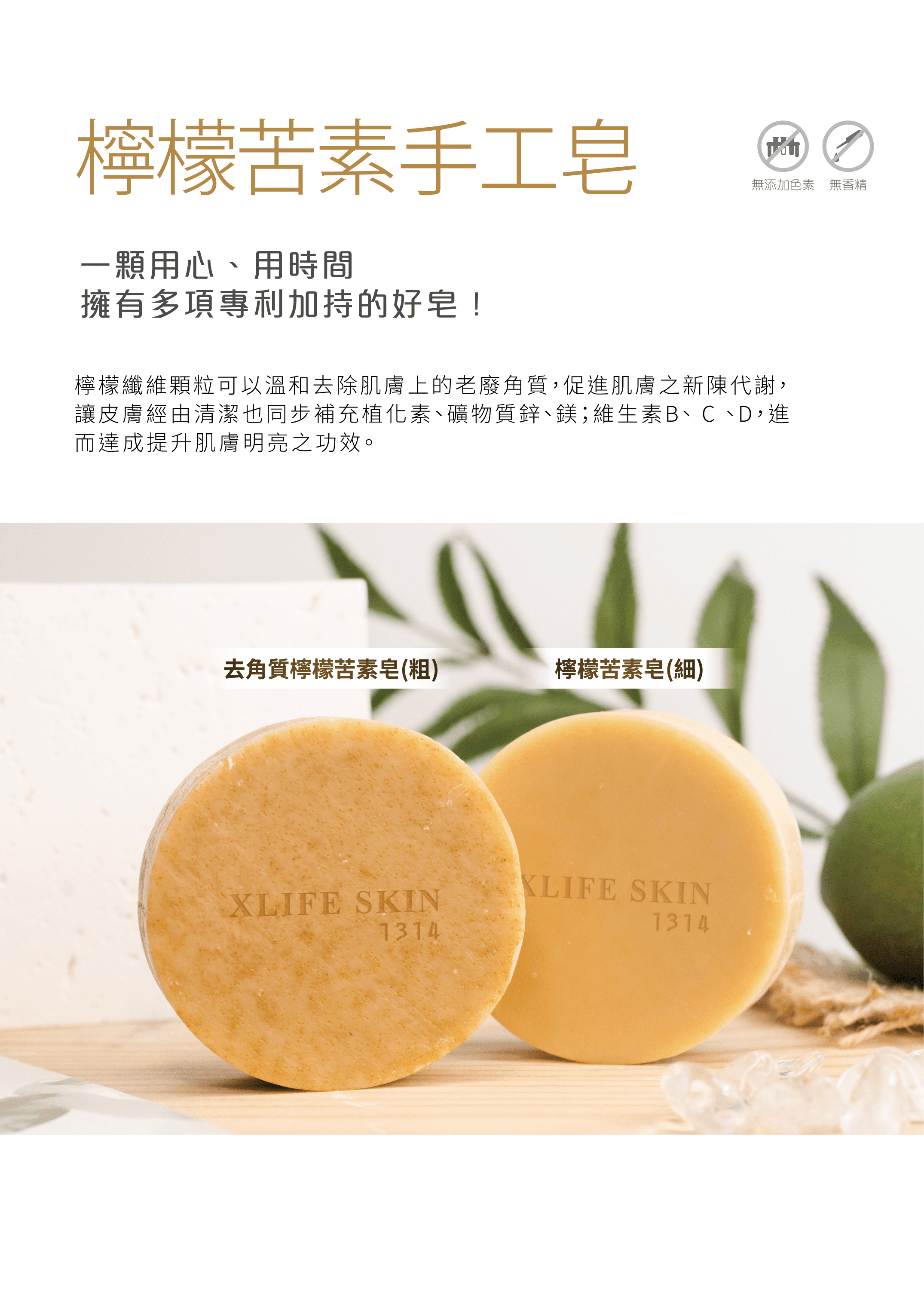 主要成分為發酵後的檸檬苦素油、檸檬苦素、檸檬纖維 經由特殊的蜂蜜酵母菌發酵,將總多酚數提升數十倍。 將發酵後的檸檬苦素及檸檬纖維以低溫烘烤至完全去除水分後 一部分浸泡於嚴選的植物油,另一部分進行萃取研磨。 . 【檸檬苦素手工皂】的檸檬纖維顆粒,可以溫和去除肌膚上的老廢角質促進肌膚之新陳代謝,讓皮膚經由清潔