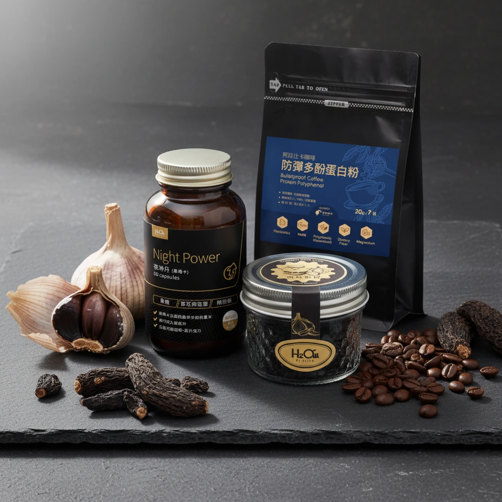 精選黑瑪卡、黑蒜與多酚蛋白,從早到晚補足日常所需,
